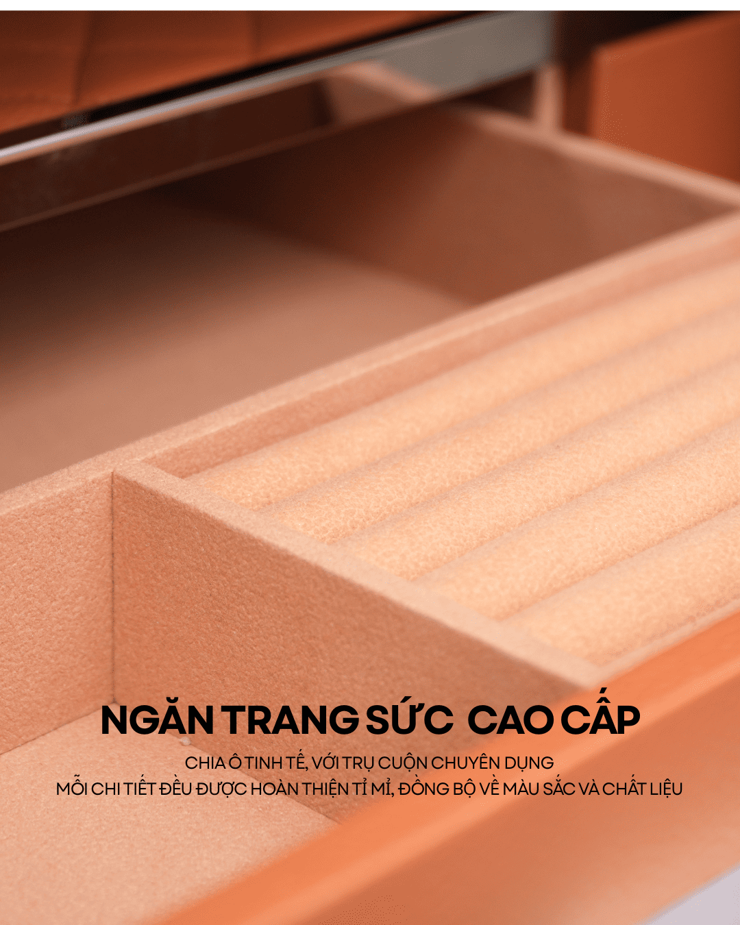Bên trong được chia ngăn khoa học, có khay phụ và ngăn kéo riêng, giúp sắp xếp đồ đạc dễ dàng và gọn gàng.