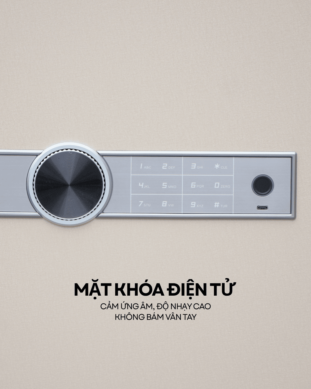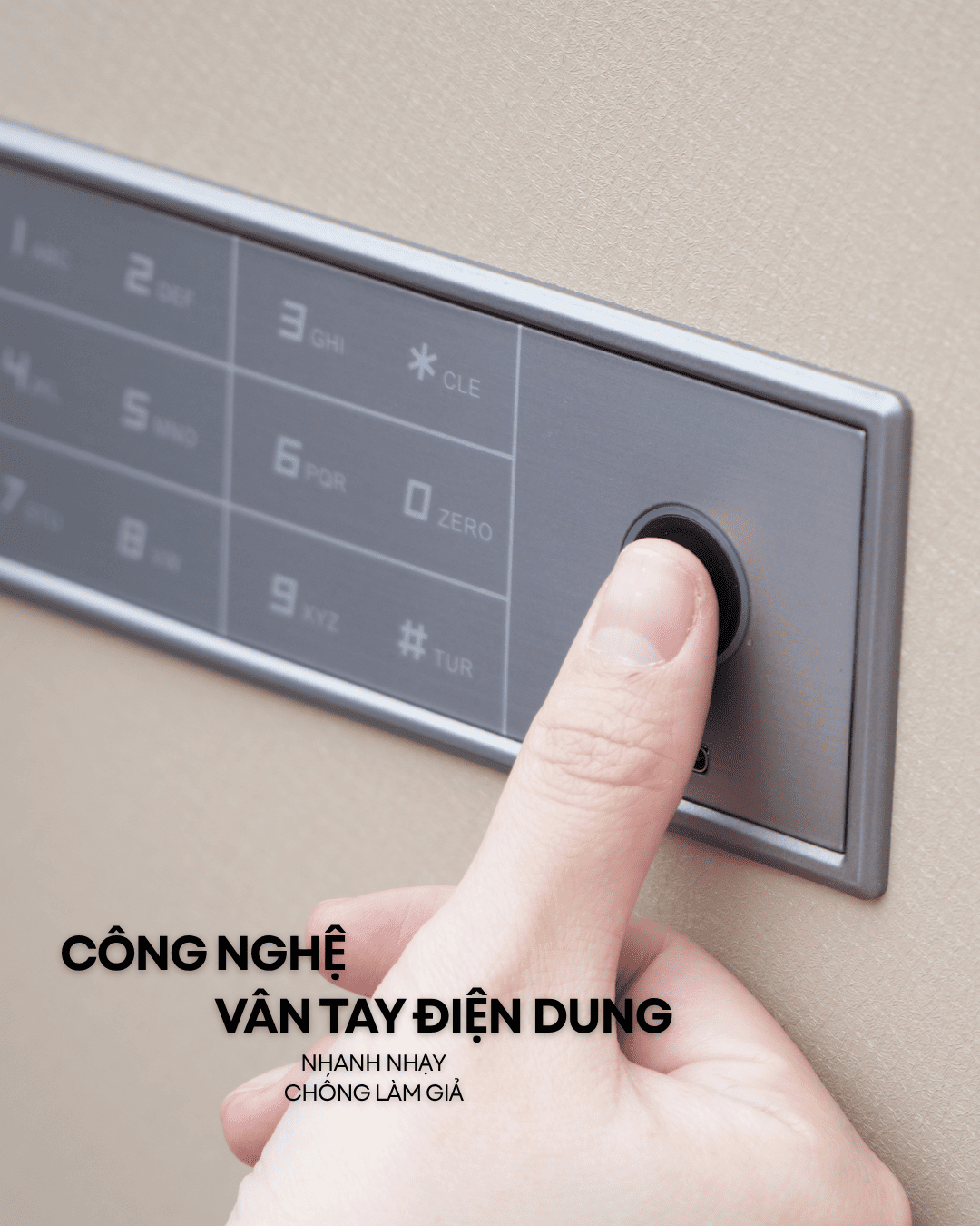 Hệ khóa: Vân tay điện dung, mã số điện tử, chìa cơ