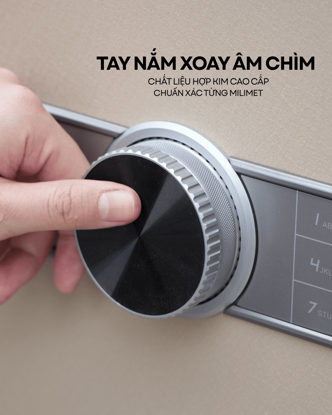 Sau khi đóng két và xoay ngược chiều kim đồng hồ, tay nắm sẽ tự động thu lại, tạo thành một mặt phẳng liền mạch, loại bỏ hoàn toàn điểm bám cho hành vi cạy phá.