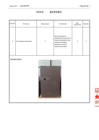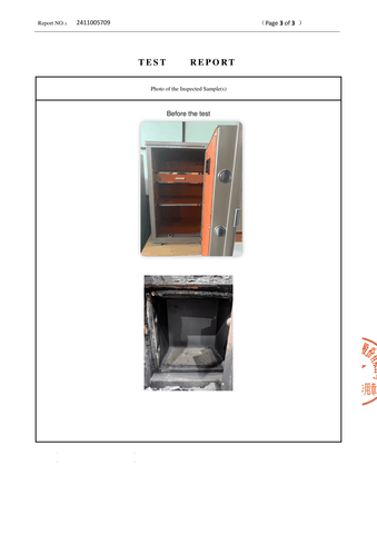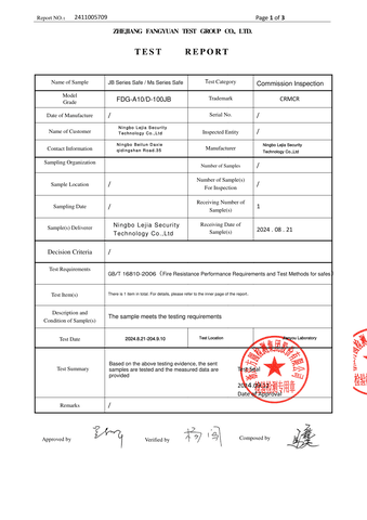 Đặc biệt, két sắt Xiaomi CRMCR dòng JB đã vượt qua bài thử nghiệm này tại Zhejiang Fangyuan Test Group (Report No. 2411005709). Kết quả kiểm định cho thấy: