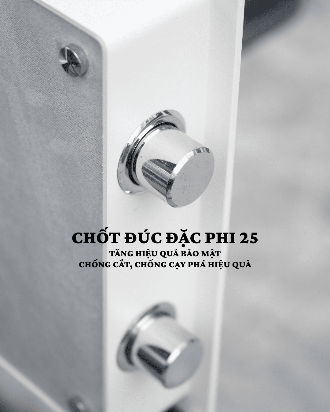Chốt khóa 2 tầng bằng thép đặc nguyên khối, chống cạy phá cực tốt.